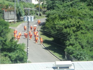 Monday afternoon, these guys danced their way down our street and up our driveway.